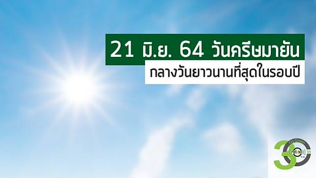 วันครีษมายัน 21 มิ.ย.64 กลางวันยาวนานที่สุดในรอบปี ดวงอาทิตย์ปรากฏอยู่บนท้องฟ้านานถึง 12 ชั่วโมง 56 นาที เข้าสู่ฤดูร้อนของประเทศทางซีกโลกเหนือ